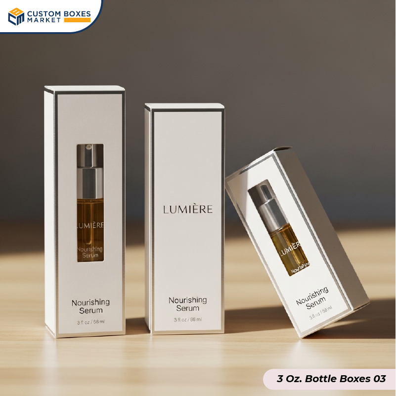 Bottled products need protective packaging to keep them in their pristine condition. At Custom Boxes Market, we provide 3-oz bottle boxes that ensure protection along with maximum visual appeal. We use quality packaging materials that keep the bottles safe from all kinds of damage.