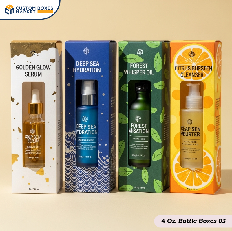 Want the best packaging solution for your bottles that is durable as well as budget-friendly? Get 4-oz bottle boxes from Custom Boxes Market at wholesale rates. The custom boxes we provide are made of durable material which ensures that they last for a long time without breaking during shipping.