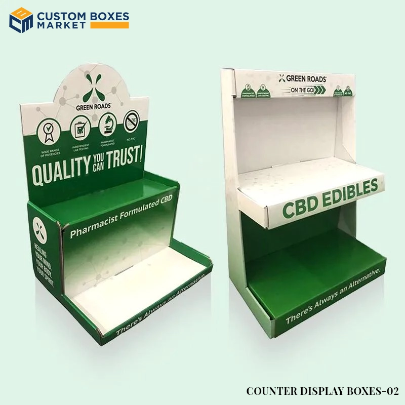 Encourage impulse purchases and enhance product visibility with Counter Display Boxes, customized with nature-friendly materials sourced from wood pulp. These packaging boxes are designed in different styles according to the variety of products. They also help in maximizing space efficiency. So, put your faith in Custom Boxes Market to make your products stand out in the market. We have diverse customization options, including 1-color, 2-color, and 4-color printing options. Other services include coatings and branding facilities. We provide wholesale and bulk order discounts. Go over our customization services and pick the best suited for your business.