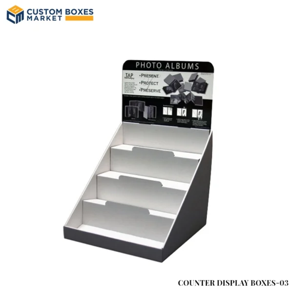 Counter Display boxes are specifically designed to be placed on counters or shelves in stores. They serve as a point-of-sale display that is often placed near checkout areas or in high-traffic areas to encourage impulse purchases. They come in different styles. They are customized with high-end materials that prevent any accidental damage to the products. For retail stores, Custom Boxes Market provides excellent packaging services all across the United States and helps brands stand out in the market.  We utilize eco-friendly and recyclable materials. In addition to these, we customize them with your logos and artwork to make them the mobile advertisers of your brand. Our manufacturing team uses advanced packaging trends and ideas to design your boxes. So, shape your brand image with our strategic customization techniques. Also, get benefits from our free shipping and design consultancy services. Order Now!