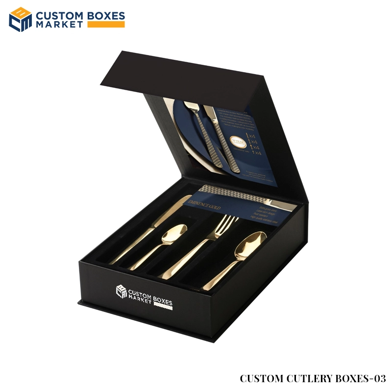 Custom Boxes Market should be your first choice when it comes to customization. The reason behind this is that we do not compromise on the quality at all. Our company offers market-comoetitive prices along with free shipping. Hurry up, place your order, and get a 3D mock preview and get yout custom cutlery boxes delivered without any hidden charges.