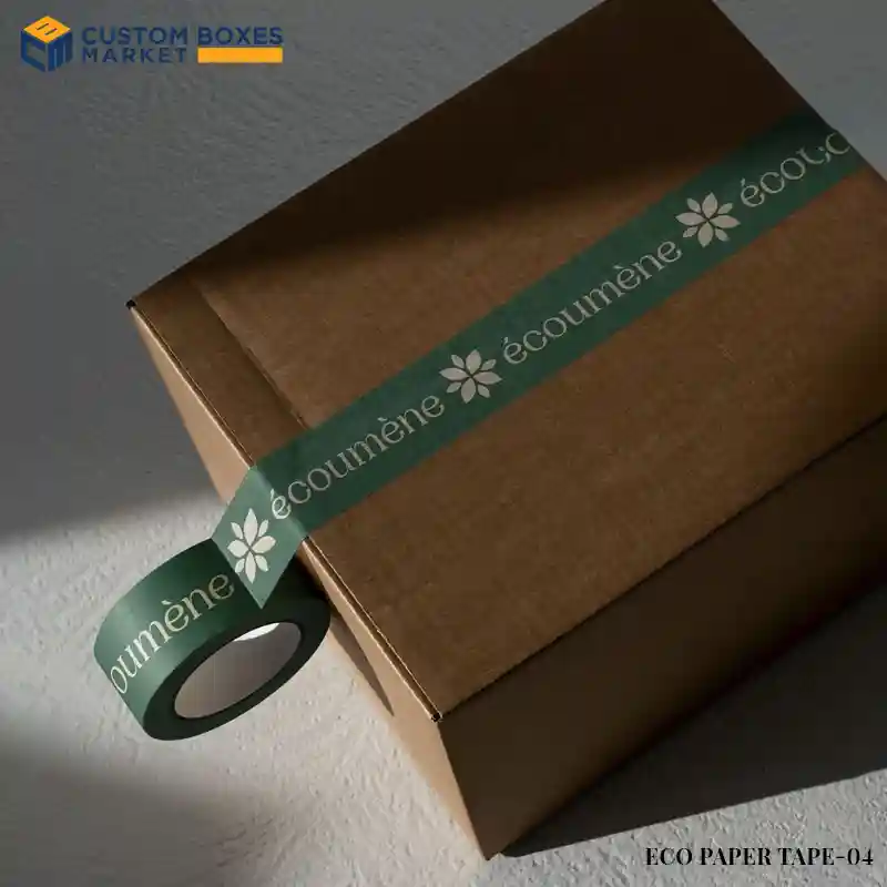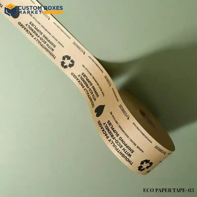 Eco paper tape is the finest choice for high-volume shipping, and our highest-performing and most economical tape per box seal. This tape may require multiple strips over the same seal to achieve the same holding power as a single strip of paper tape. When used with a dispenser device, it is functionally seamless and allows packages to move through satisfaction more quickly and easily. Custom boxes market provides you with durable custom carton-sealing tape that is always 100% recyclable. We offer custom designs and sizes that effortlessly seal your product packages and keep them secure during delivery.  From the printing process to eco-friendly paper and alluring finishes with eye-catching brand name designs and logo embossed tape. We provide exclusive services to help your business packages be delivered and stored safely in the markets of America. So, contact us to get the best techniques with exclusive discounts on ordering in bulk. Hurry up and grab the deal before the stock ends!
