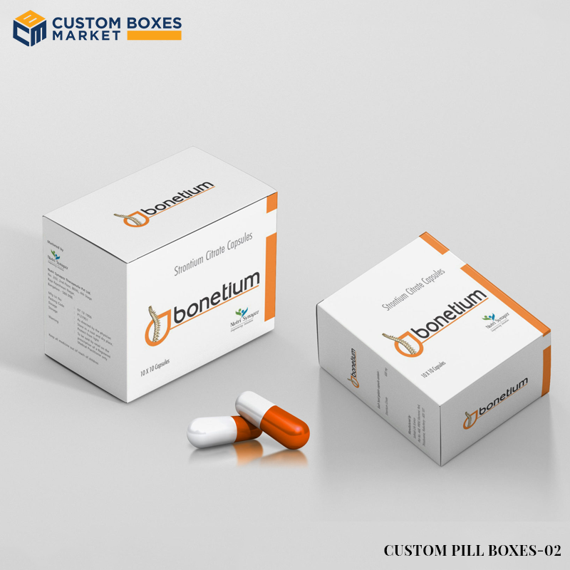 In the pharmaceutical industry, changing the trends for custom pill packaging boxes or improving the box design is normal. At customboxesmarket, we offer customized pill boxes that meet several health standards and meet all your needs. So, you can market your product or company with our printed pill boxes. Our professionals are crafted with durable and high-quality materials that provide excellent protection to your services health care products. We print your boxes with logos, promotional quotes, and product-related information on the boxes that enhance the visual presentation of the boxes. We offer all kinds of printing techniques such as digital, offset, onset, flexography, and skill screen printing. Our experts embrace your packaging with our fabulous finishing techniques. Gloss and matt lamination with embossing and debossing techniques make your boxes premium and sophisticated. We offer free shipping worldwide, quick turnaround time, start from 100 boxes, customer support, online design assistance, and economical prices. Order now!