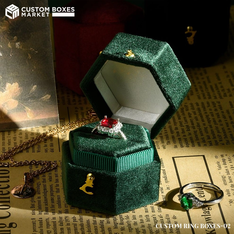 Jewelry is one of the most aesthetic accessories that needs aesthetic packaging. That is why the Custom Boxes market has brought custom ring boxes for your brand. These boxes will give a unique showcase to your elegant rings and help you show the customers why your brand is the best.   The best part about these boxes is that they are luxurious without causing harm to the environment. From materials to finishes, all the elements of the boxes are sustainable and free from polluting elements. You can grab the best designs and catchy add-ons to maximise the uniqueness of your product.   If you need the most affordable yet quality packaging in the USA, then look no further. Our company has launched its unique and affordable range of custom boxes to pack rings. Whether you are running a small jewelry business or you are an established retailer, these boxes are a mandatory element for your product presentation and sales. So call now!