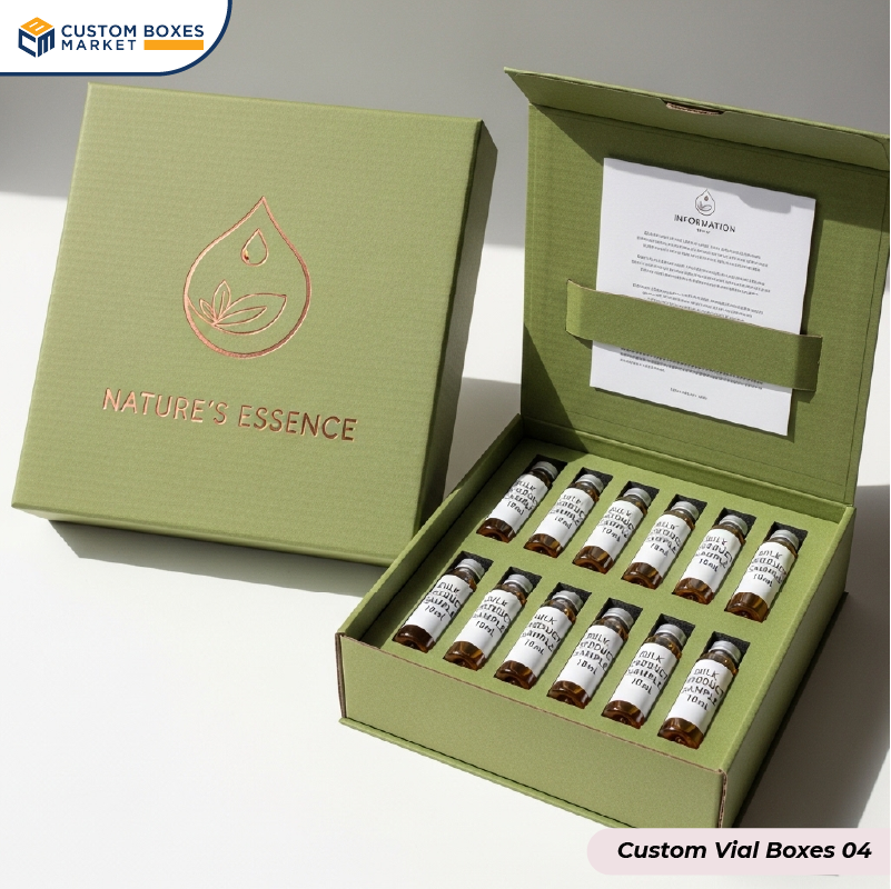 The custom vial boxes with logo are made from durable and eco-friendly materials like corrugated or kraft paper with adjustable sizes that give extra resistance to breakage while effectively communicating the brand identity. Pharmacies and cosmetic shops are actively utilizing these packages to hold their professional value within the U.S marketplace.