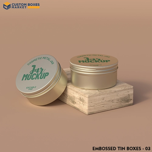 Presentation is a crucial part of every product packaging. For this, CustomBoxesMarket offers embossed tin boxes as a complete solution for all types of product packaging and marketing needs. As these boxes are manufactured from a durable material, steel that is coated with tin, they provide food-grade properties. Moreover, the raised texture on the packaging boxes enhances the overall presentation of your product and gives a distinctive look that catches the eyes of customers at first glance. Not only that, the embossed branding elements in the packaging boxes convert your food packaging into a marketing tool, allowing you to promote your brand without spending a hefty price. The limitless customization possibilities our company offers allow you to customize your tin packaging for your retail products, like cosmetics and electronics, according to your brand theme or product requirements. Our company also offers these embossed tin packaging boxes at market-competitive prices with free shipping and the fastest turnaround. So place your order now!