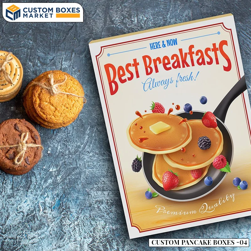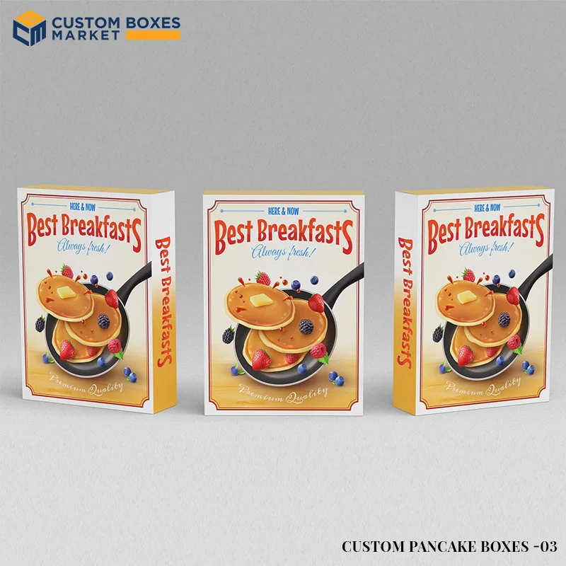 CustomBoxesMarket offers boxes that are manufactured from food-grade materials for the protection of pancakes. The boxes we offer have no impact on your dessert product but they protect it from damage, dust, and other contaminants that can spoil the taste. Our boxes are printed with an attractive and mouth watering design that grabs the attention of dessert lovers.