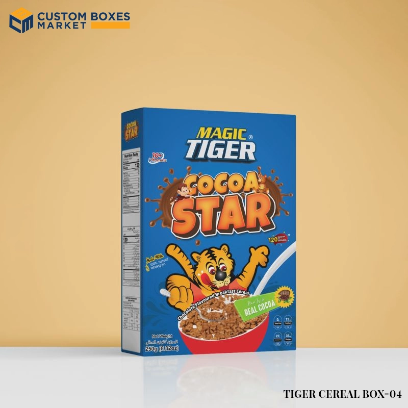 Are you looking for the best tiger cereal box? If yes, then get the services of the custom boxes market, we provide you with the best sturdy and affordable packaging. Our Packaging solution offers you unlimited personalization that will enhance your brand visibility in the marketplace.